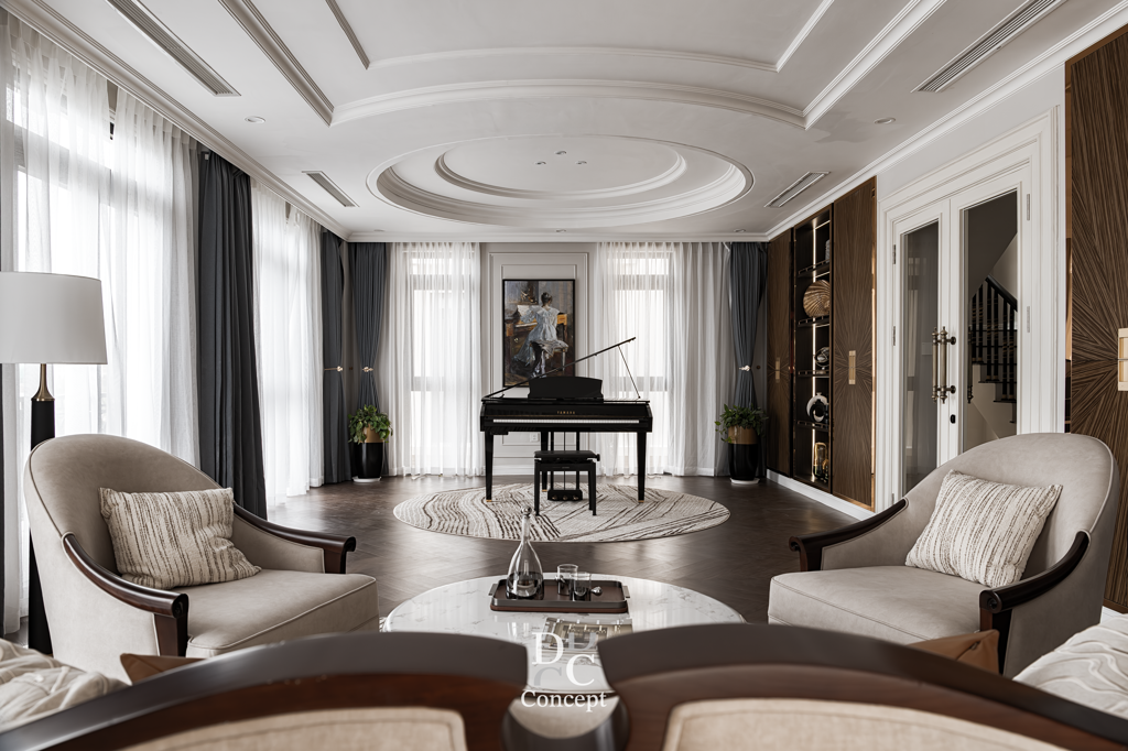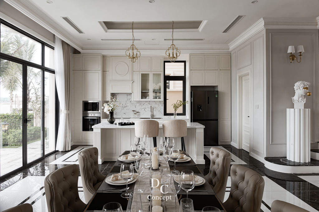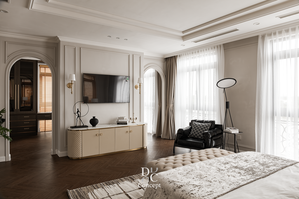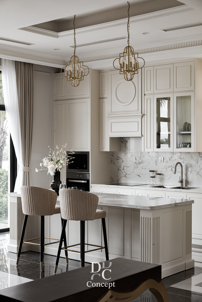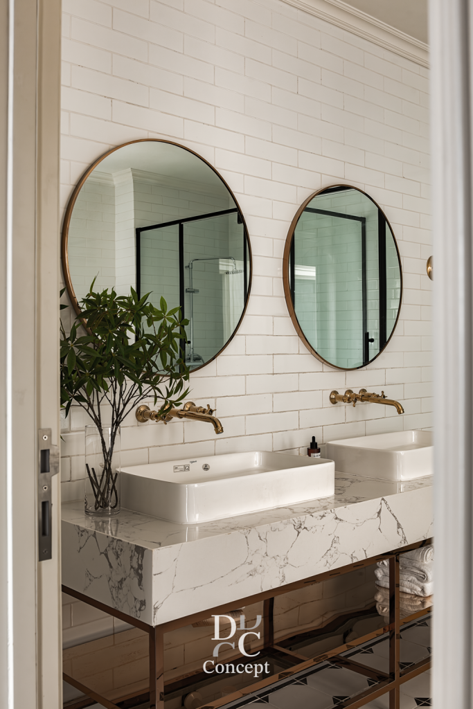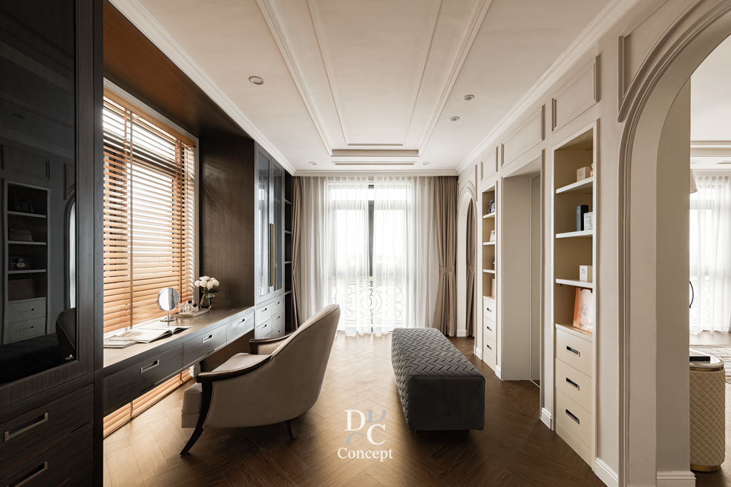 DC Conceptが提案するネオクラシックスタイルは、 ヨーロッパの美学と現代的な快適さが調和した上質なデザインです。 繊細に整えられたモールディング、バランスの取れたコラム、 マーブル模様のストーンやゴールドメタルのアクセントが、 華やかでありながら温かみのある空間を演出します。 装飾を抑え、丁寧さと精度を重視。 ここでのネオクラシックは「少なくして豊かに」という美学。 清潔感のある素材、上質な質感、巧みなライティングにより、 住まいそのものが“洗練と格の象徴”となるアートです。