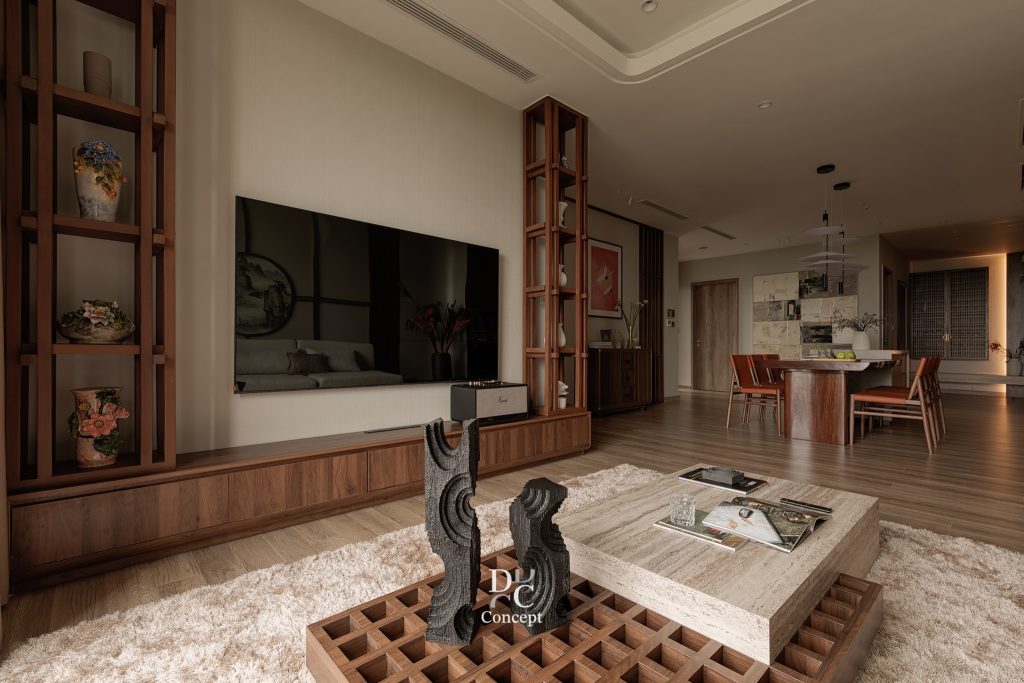 Pages Biệt thự mẫu 145 Royal Island VŨ YÊN – HẢI PHÒNG PHÒNG KHÁCH – BẢN TINH HOA ĐÔNG DƯƠNG ĐƯƠNG ĐẠI Không gian phòng khách là nơi DC CONCEPT tái hiện tinh thần Đông Dương một cách đầy trọn vẹn – sang trọng, giàu chiều sâu văn hóa