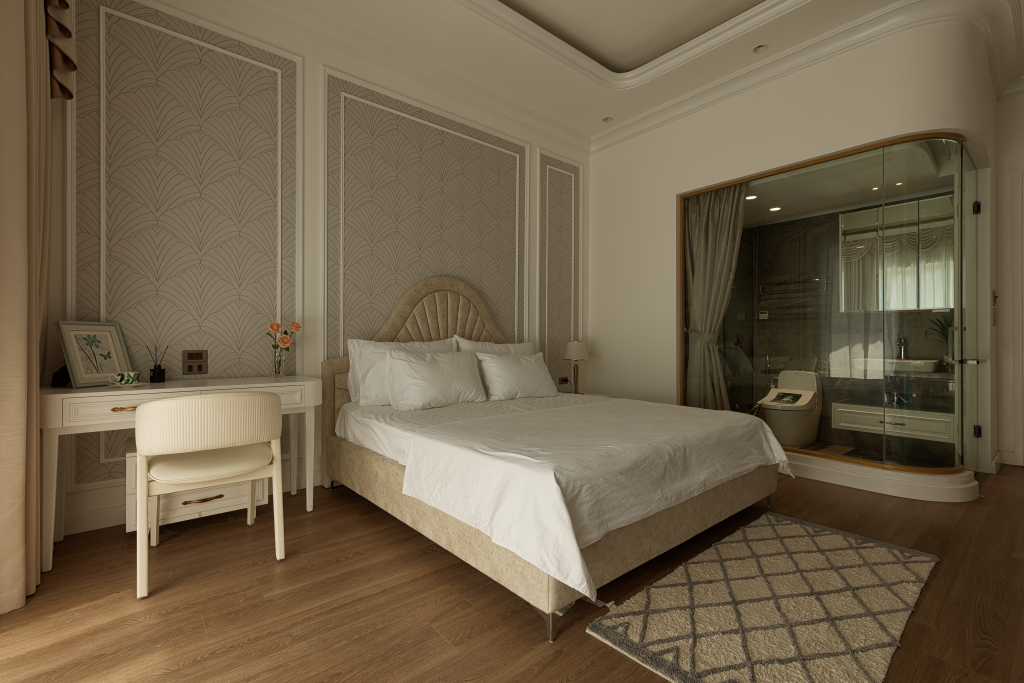 Với mong muốn kết nối các thế hệ trong gia đình, thiết kế của căn nhà được chia thành 4 phòng ngủ khác nhau, bên trong mỗi phòng ngủ phù hợp với nhu cầu và sở thích của từng lứa tuổi. Từ không gian sống cho các bậc phụ huynh, đến những phòng dành riêng cho các con, mọi chi tiết đều được tính toán tỉ mỉ để tạo ra sự hài hòa giữa truyền thống và hiện đại, giữa những kỷ niệm xưa và cuộc sống mới.